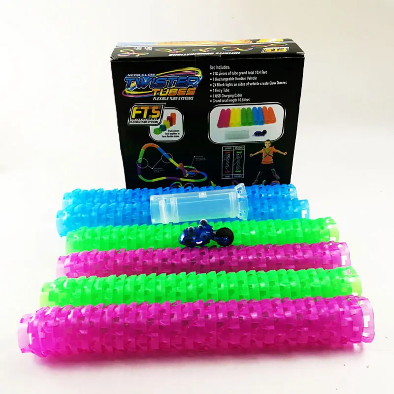 DIY Kid Twister Tubes Game Toy Electric Pipe Track Car Set Flashing Light Tube Truck Rechargeable G